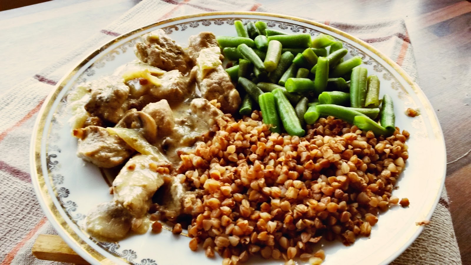 Pyszne, rozpływające się w ustach mięso w kremowym sosie na bazie świeżych pieczarek, cebuli i musztardy. Wspaniała potrawa nie tylko na co dzień, ale także na wszelkie specjalne okazje i święta. Danie podałam z ugotowaną na sypko kaszą gryczaną i zieloną fasolką, ale doskonale będą pasować także ziemniaki i np. ulubiona surówka. :)