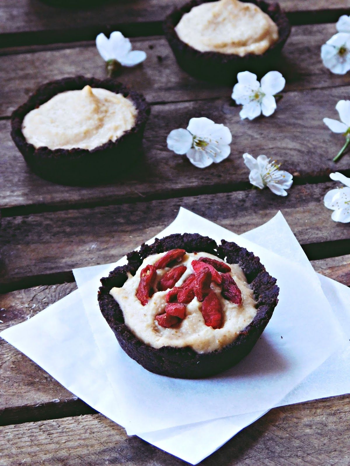 Mimo wszystko same spody były niewystarczające na deser, tak więc musiałam pomyśleć o jakimś wyszukanym nadzieniu. Tym razem postanowiłam, że zrezygnuję z twarożku i innych nabiałowych produktów. Wiecie, przejście na wege i te inne sprawy... albo nie, po prostu z czystej ciekawości : ,,Czy to będzie w ogóle smakowało?"