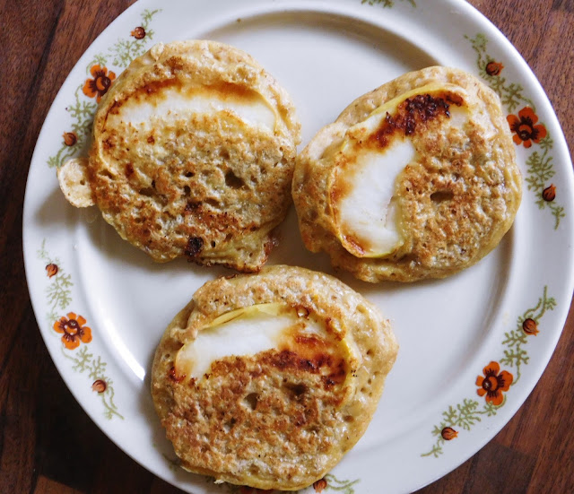 Między posiłkami staram się pić min. 1,5 litra wody dziennie. Ponadto jestem (troszeczkę) uzależniona od kawy i zielonej herbaty (teraz mam z dodatkiem pigwy i jest przepyszna!). Duży kubek kawy z niewielką ilością mleka popijam przeważnie rano i późnym popołudniem. Na wieczór lubię sięgać po zieloną herbatę, ale parzę ją bardzo długo dzięki czemu zyskuje właściwości relaksujące. W przypadku przekąsek bywa różnie, dlatego też nie pokazywałam ich w filmiku. Przeważnie sięgam po wafle ryżowe i świeże owoce, a czasem wpadnie jakaś mała słodycz. Generalnie staram się, by główne posiłki dostarczały mi najwięcej energii, ale jeśli czuję jej niedobór - wybieram najprostsze rozwiązania. Na zdjęciu banalne w przygotowaniu placuszki z płatków owsianych i jabłka. Najprostsze, najpyszniejsze, idealne kiedy dopadnie ochota na coś słodkiego.