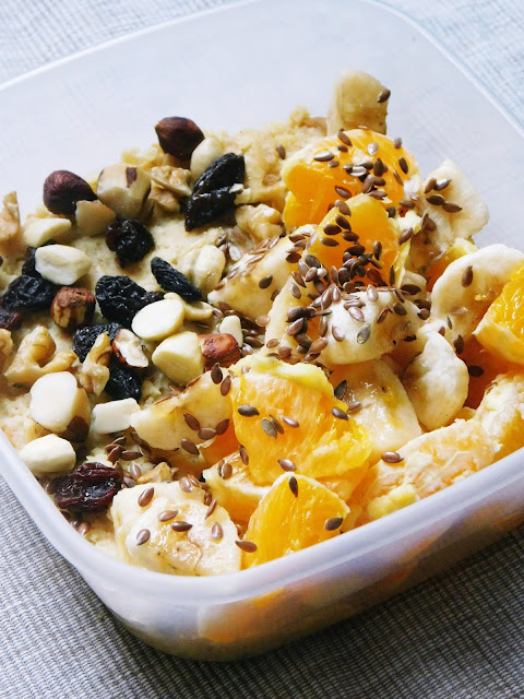 - owoce : 1/2 banana i 1/2 pomarańczy