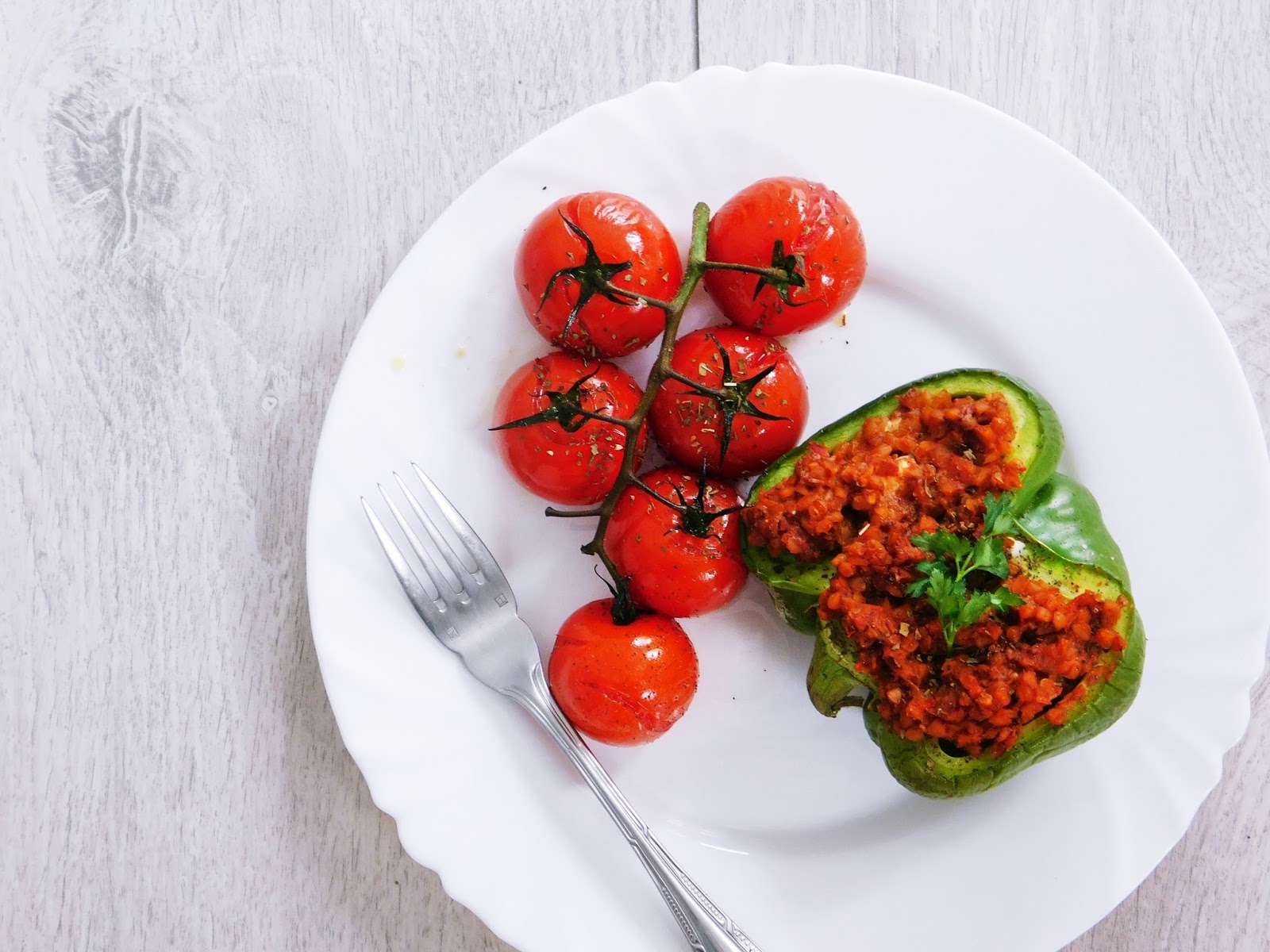 Odsączoną i rozgniecioną fasolę przekładamy do miski, dodajemy warzywa, koncentrat pomidorowy i kilka łyżek płatków jaglanych, tyle, aby zagęścić masę.