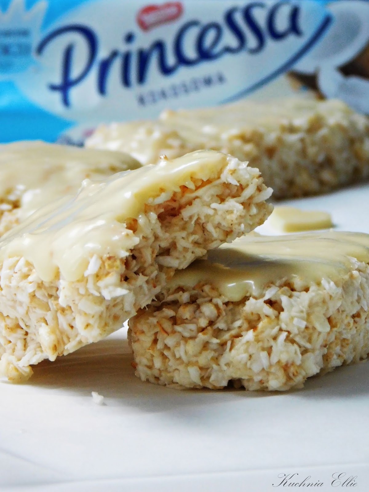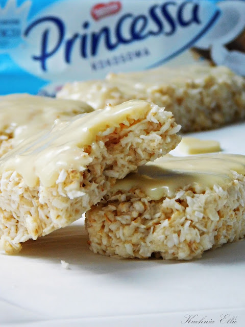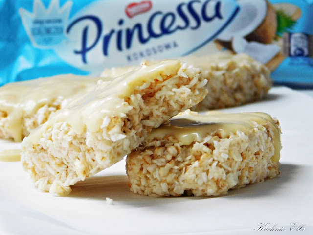 Princessa kokosowa - znacie, lubicie? Dzisiaj przygotowałam dla Was odchudzoną wersję tych pysznych wafelków. Przygotowanie to kwestia zaledwie kilku minut, później muszą spędzić godzinkę w zamrażalce i... voila! Przed samym podaniem polecam zwieńczyć wierzch polewą z białej czekolady. Batoniki są niezwykle delikatne, bardzo przypominają oryginał i skutecznie zaspokajają apetyt na słodkie. Musicie wypróbować!