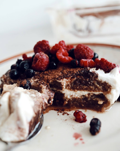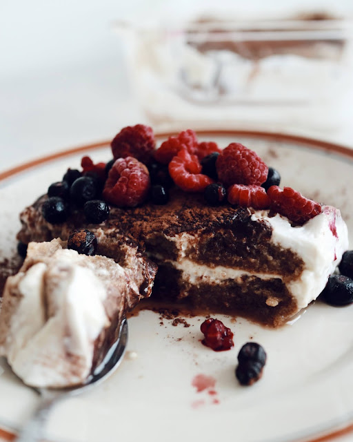 Gotowe! Tiramisu bardzo dobrze smakuje z dodatkiem owoców jagodowych.